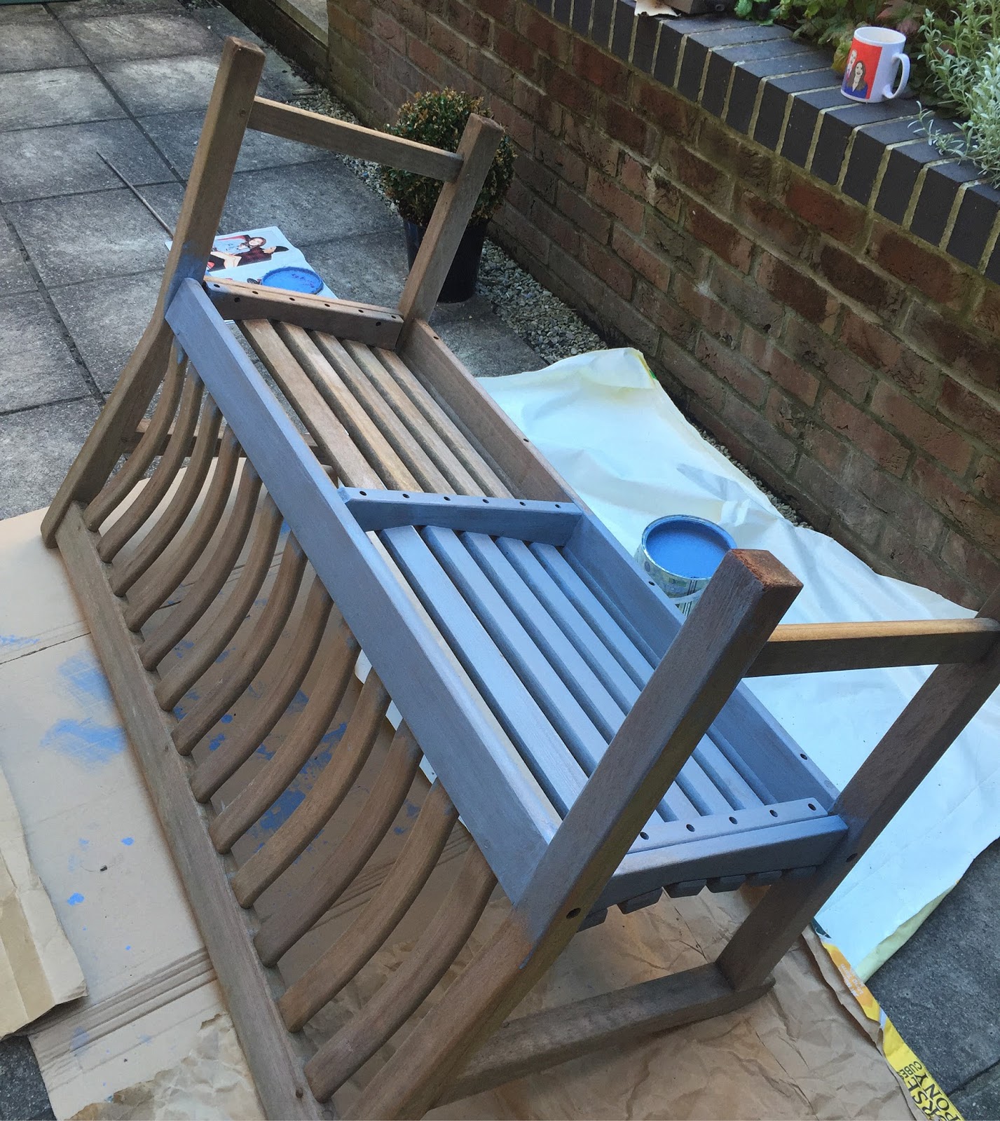 I found the garden bench needed 3 coats of paint as it’s an older wood, whereas the plant potter only needed 2 coats to reach my ideal shade of blue. This is where the patience is needed & a few more cups of tea!